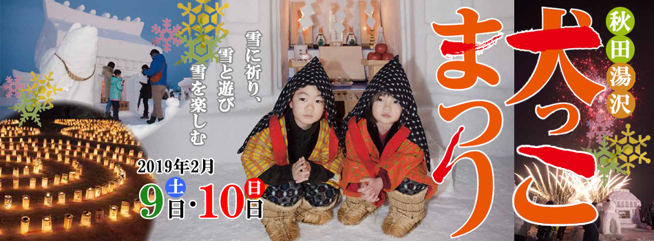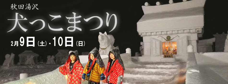![]() 犬っこまつりは、元和の昔より、約400年もの長い間続いたといわれる湯沢地方の民俗行事です。 そのころ、白昼堂々と人家を襲う「白討(はくとう)」という大盗賊がいましたが、湯沢の殿様がこれら一味を退治し、再びこのような悪党が現れないようにと、米の粉で小さな犬っこや鶴亀を作らせ、旧小正月の晩に、これを家の入口や窓々にお供えして祈念させたのが、この犬っこまつりの始まりとされています。 花火、郷土物産展示即売会、南家佐竹太鼓演奏、どんど焼き、愛犬祈願祭など、多彩なイベントでにぎわいます。