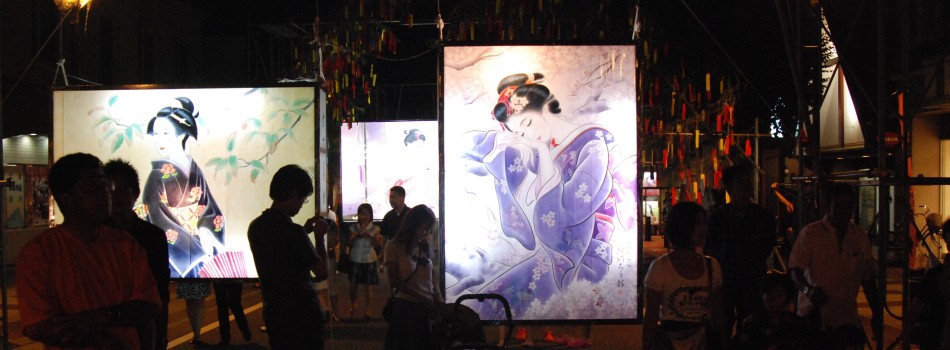 ![]() 湯沢の「七夕絵どうろうまつり」は、秋田藩佐竹南家七代目義安公に、京都の公卿鷹司家から「おこし入れ」された姫君が、京都への郷愁やるかたなき想いを五色の短冊に託し、青竹に飾りつけたのが始まりといわれています。 期間中、家々では青竹に五色の短冊や吹流し等をつり下げて門前に飾るほか、浮世絵美人が描かれた大・小数百個の絵どうろうが通りに下げられます。 日暮れ時ともなれば、これらの絵どうろうに一斉に灯がともされ、市内一円が一大不夜城と化します。その色彩と優雅さは、全国にも例のないお祭りです。 ![]() ![]() ![]() ![]()
